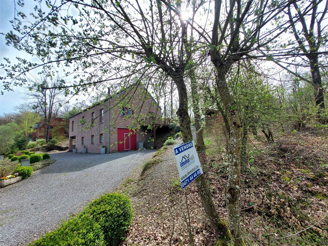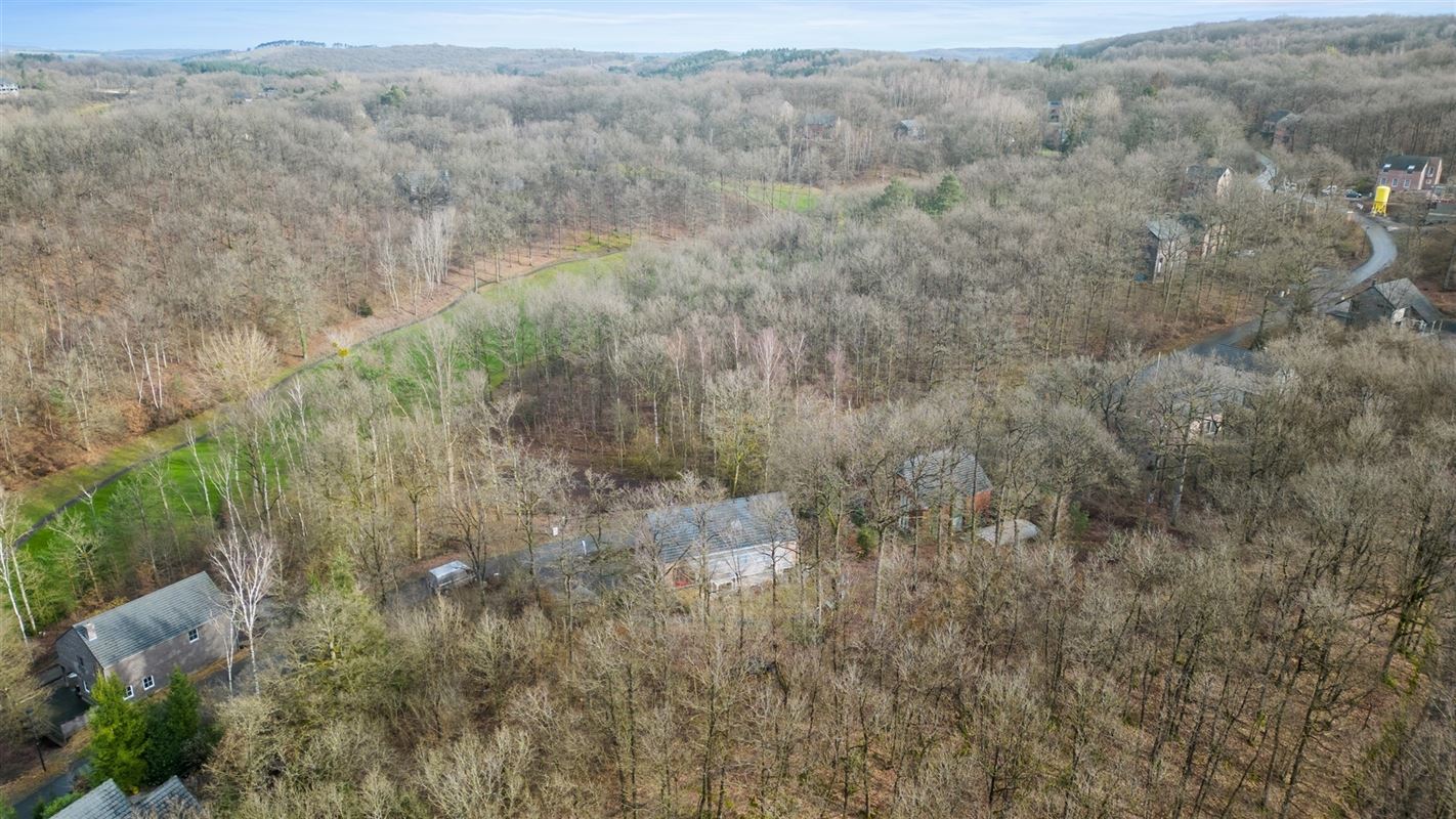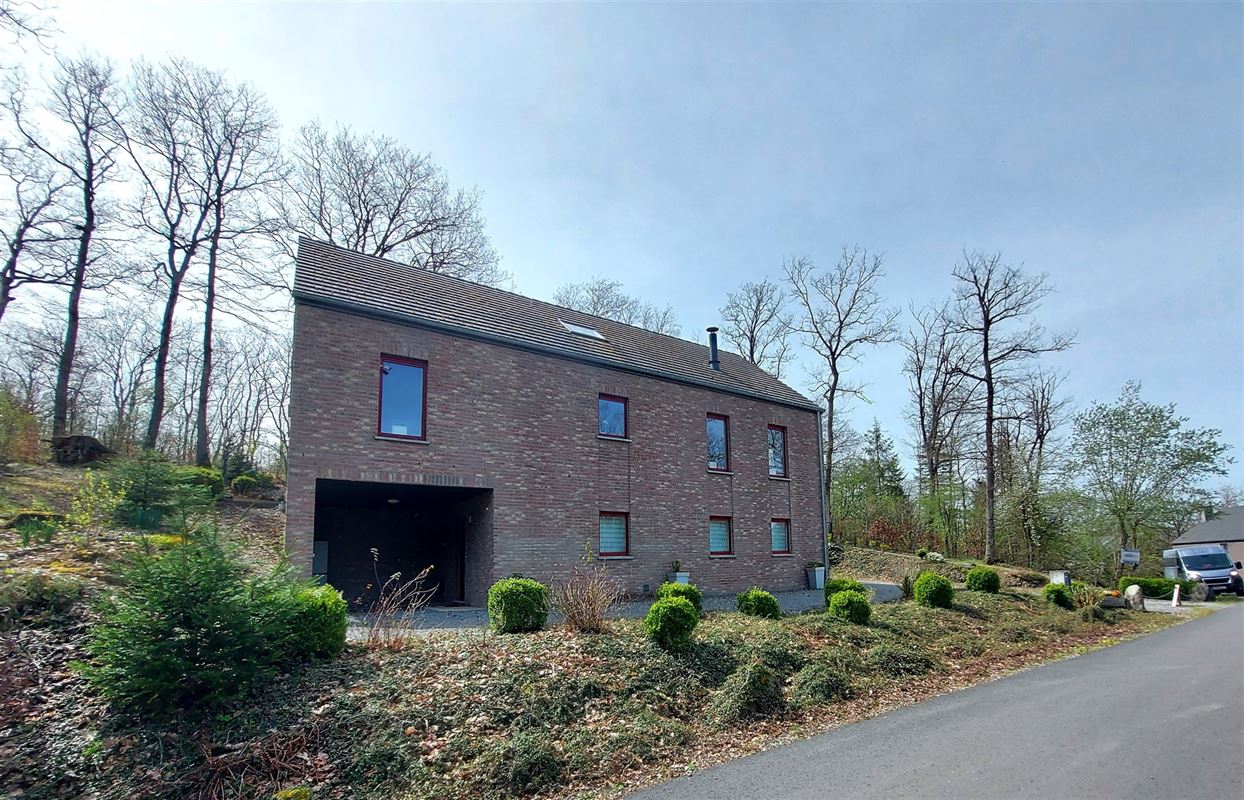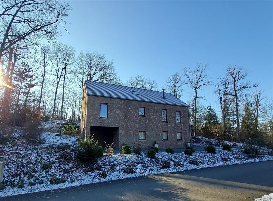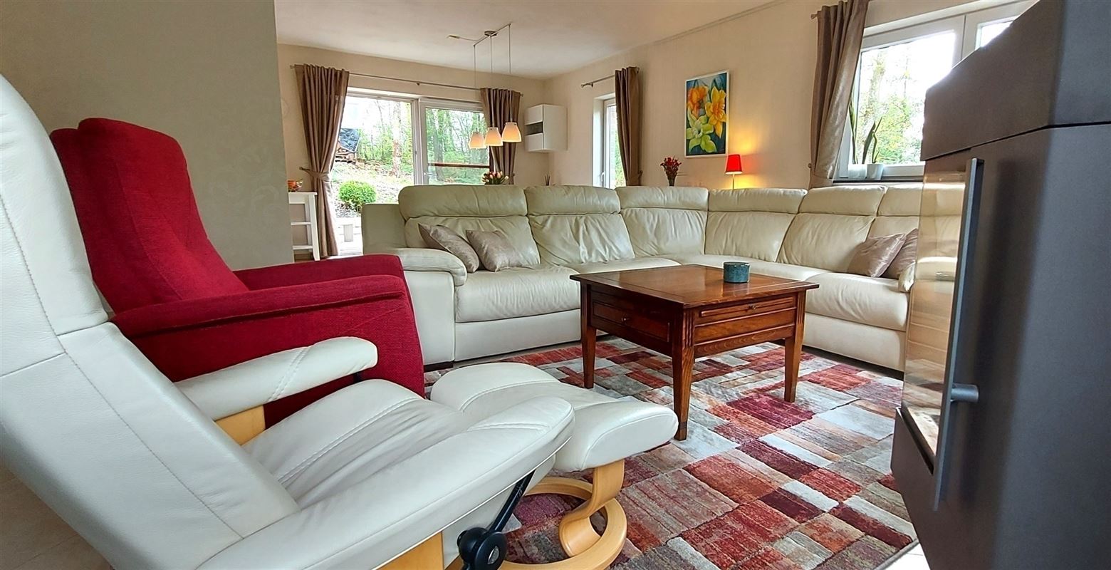 Tuin : Via living terras schuifdeur naar bemeubeld deels overdekt privéterras, BBQ, houtopslag, speeltoestellen en loop je zo het bos is!