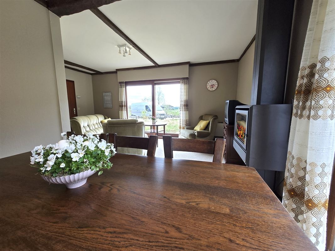 Bevat: Inkom, aparte w.c., Living gezellige houtkachel, zithoek en eettafel uitgevend met deurraam naar terras, comfortabele keuken. Achterdeur aansluitend op aparte berging.