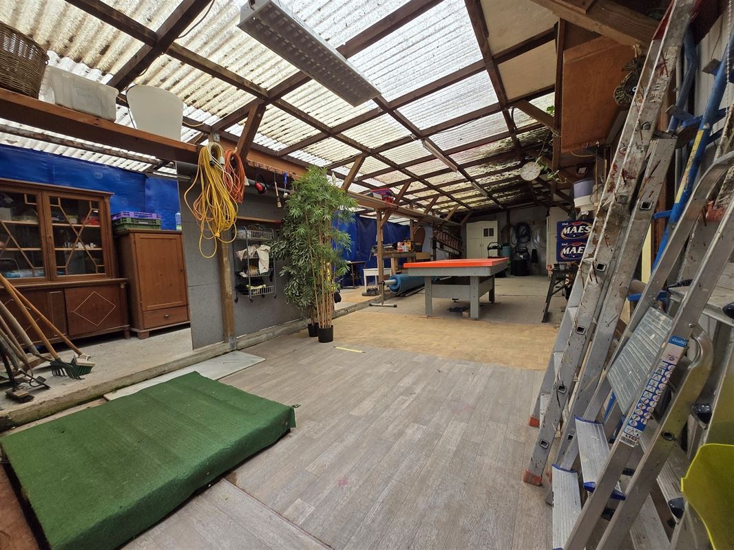 Tuin: Garage – atelier ruime multifunctionele ruimte, alle faciliteiten voor vast verblijf, biljart, onderhoudsvriendelijke tuin, kiosk, kippenhok, omheind met hek, oprit met autostaanplaatsen.