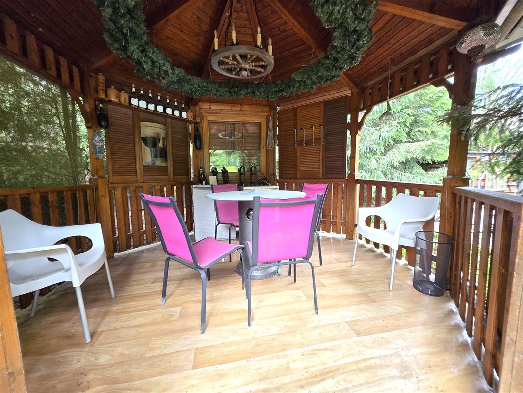 Extra’s: zwembad, garage / atelier, goed onderhouden, vele gezellige terrasjes en kiosk, Proximus en satelliet aansluiting. Centrale verwarming op gas en pellet kachel in living. Gezellige aangebouwde veranda’s met zetelbed.
