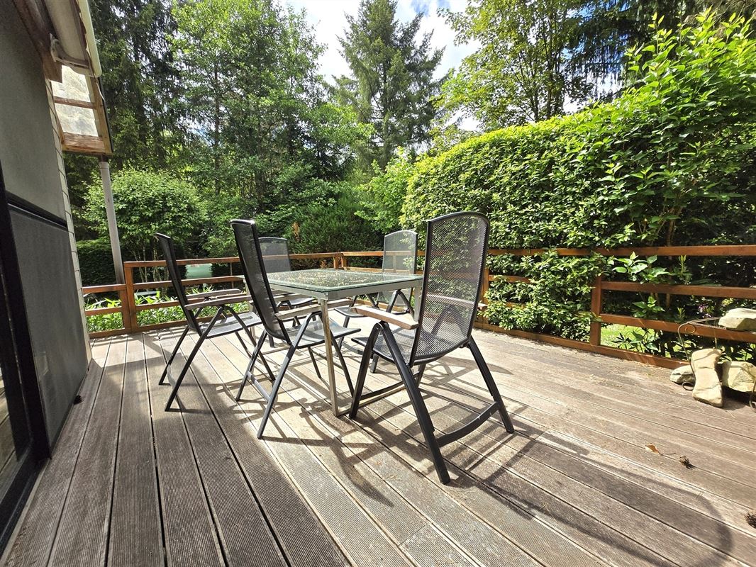 Smaakvol ingerichte, perfect onderhouden ruime prefab chalet, met 2 aangebouwde veranda’s,