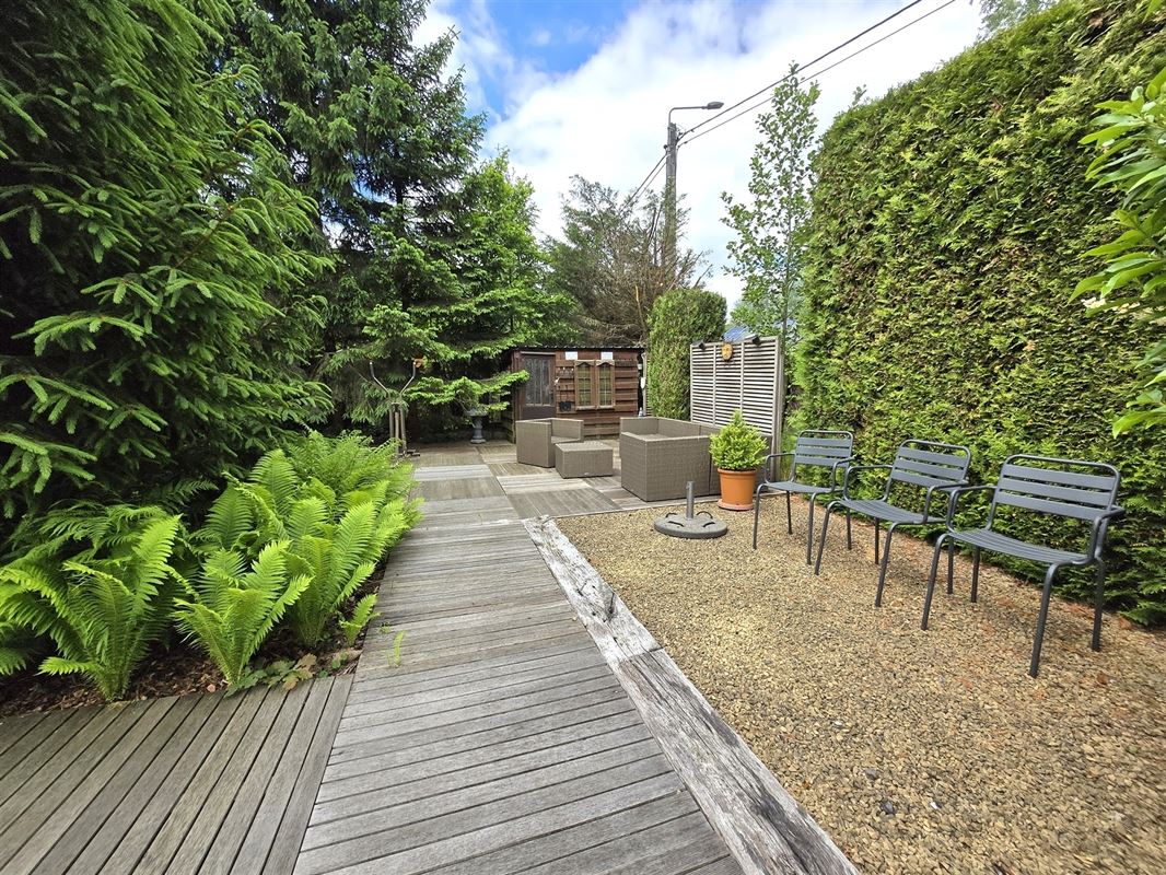 feeërieke grote tuin 24a 85 ca met zwembad en vele terrassen, volledig omheind.