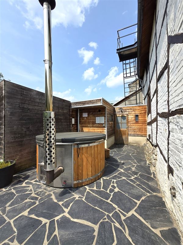Immohali verkoopt authentieke Ardennese luxueus ingerichte bemeubelde woning met welness, uniek in aanbod op wandelafstand van het pittoresk riviertje Aisne te Aisne woongebied deelgemeente Durbuy, alle faciliteiten voor vaste woonst.