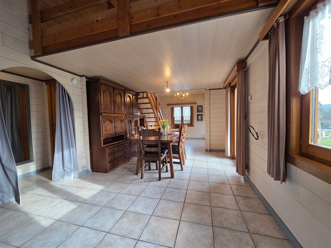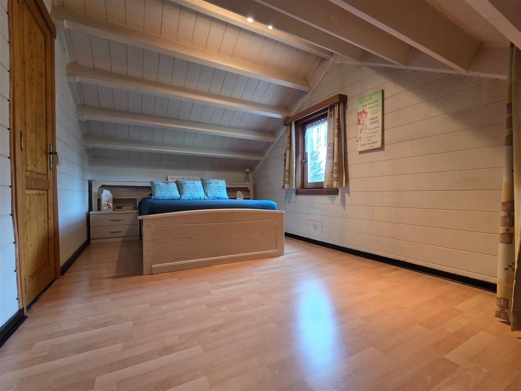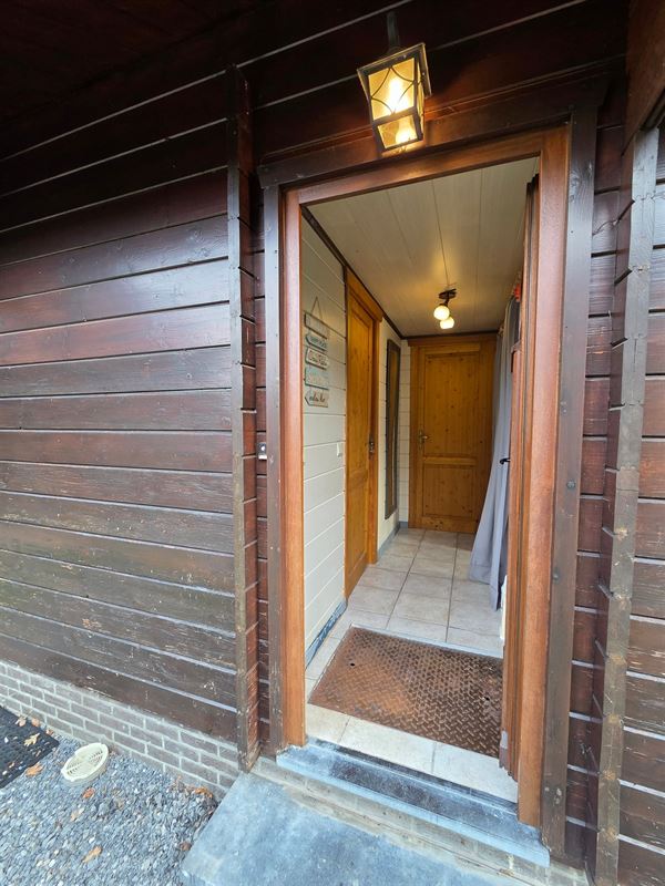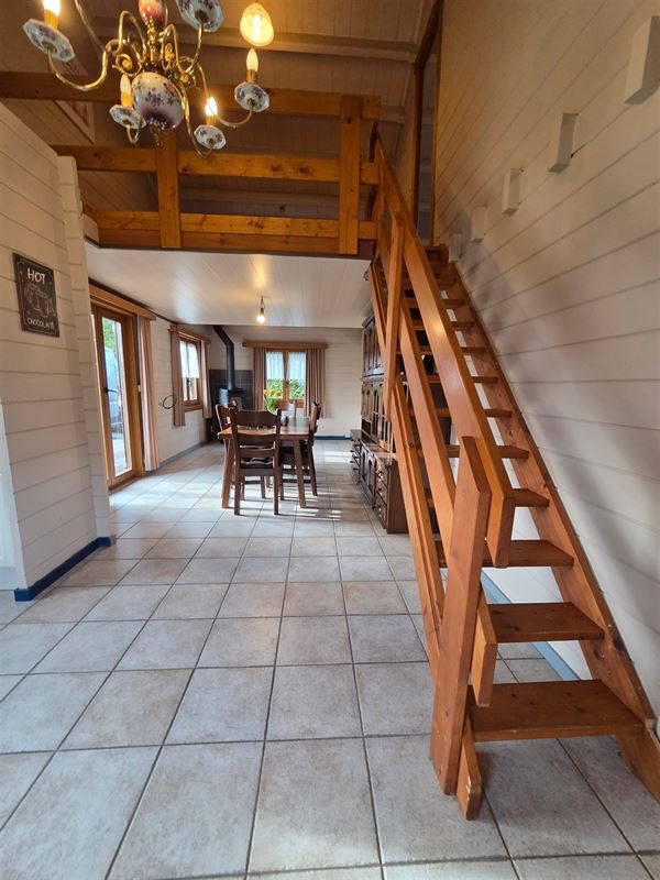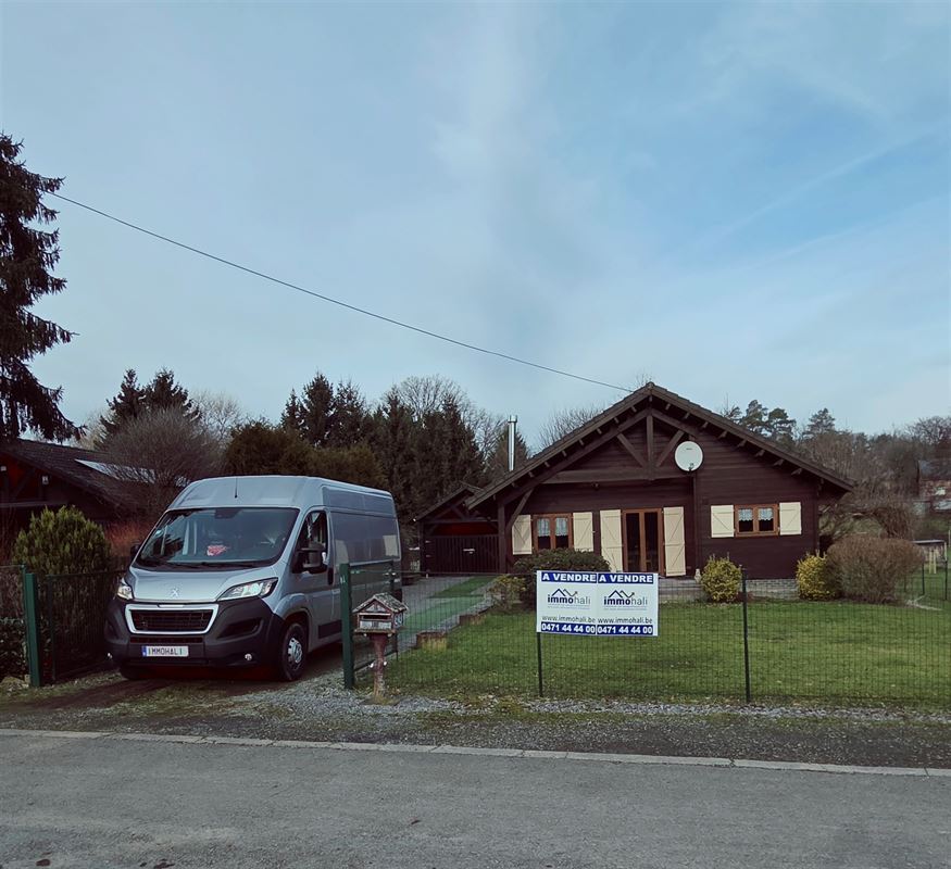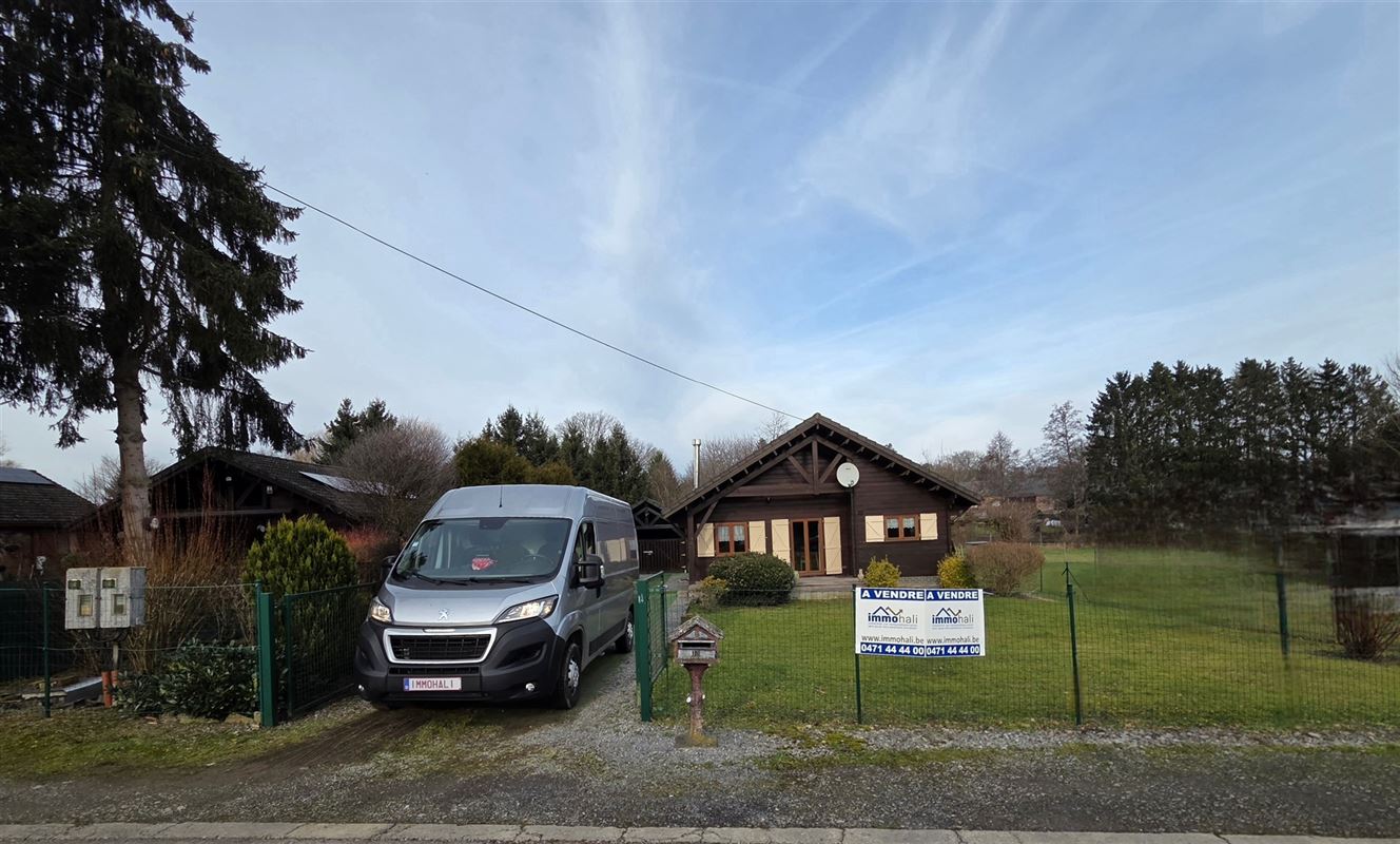 IMMOHALI verkoopt charmante en kwalitatieve chalet (type stapelbouw) gelegen in een rustige doodlopende straat in recreatiezone, ideaal als tweede verblijf,