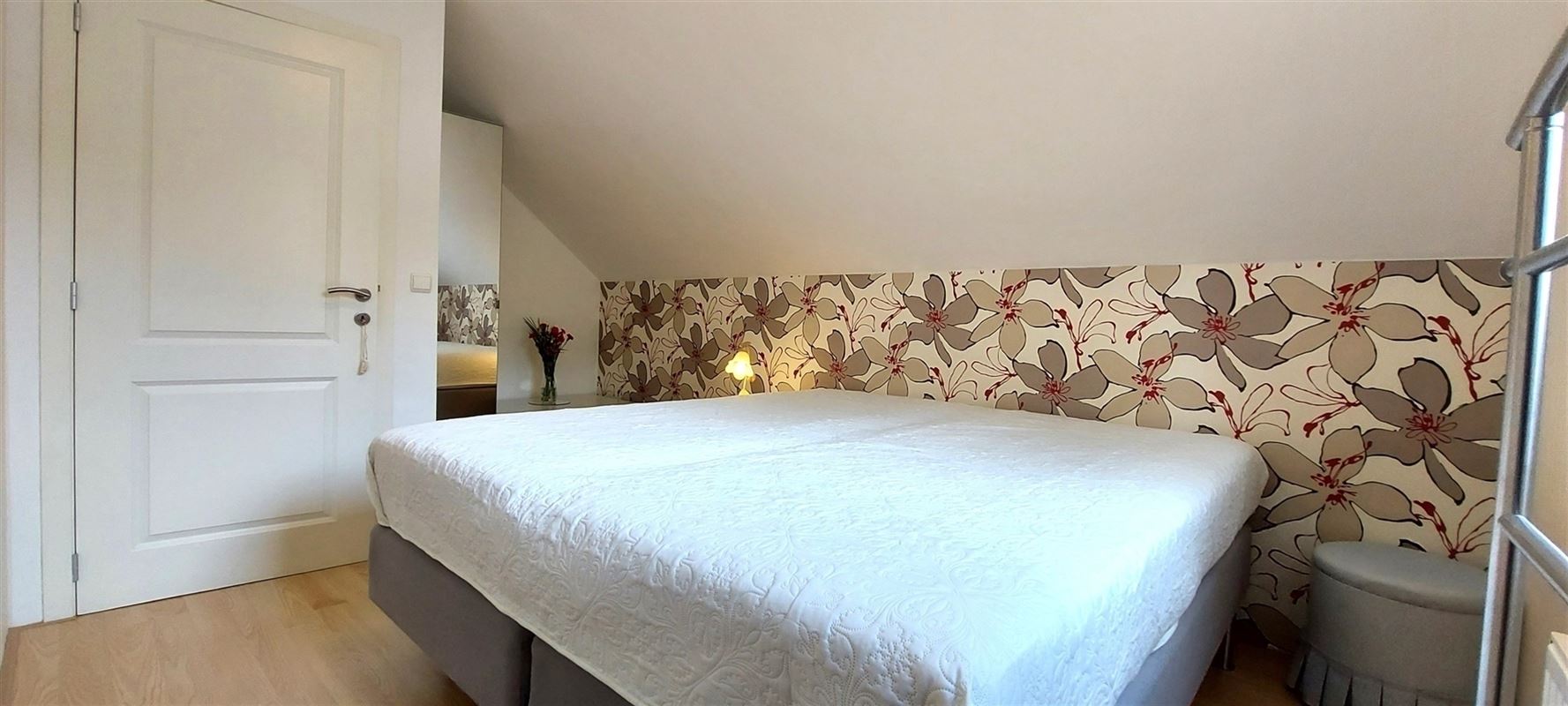 2de verdieping: Twee slaapkamers. Badkamer met douche, 2 lavabo’s. Aparte w.c..