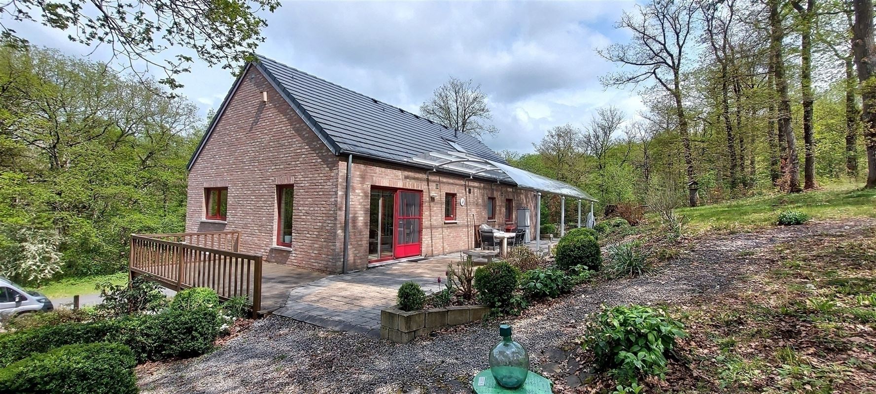 Tuin : Via living terras schuifdeur naar bemeubeld deels overdekt privéterras, BBQ, houtopslag, speeltoestellen en loop je zo het bos is!