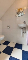 1ste verdieping: Overloop met apart toilet. Grote L-living met bureau, eet en zit-TV hoek. Gezellige haardkachel. Vloerverwarming. Fraaie Amerikaanse geïnstalleerde keuken. Twee slaapkamers. Badkamer met douche & ligbad, lavabomeubel, w.c..