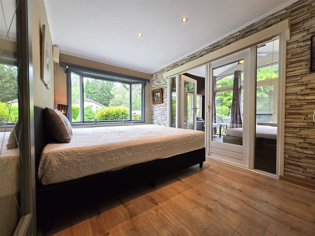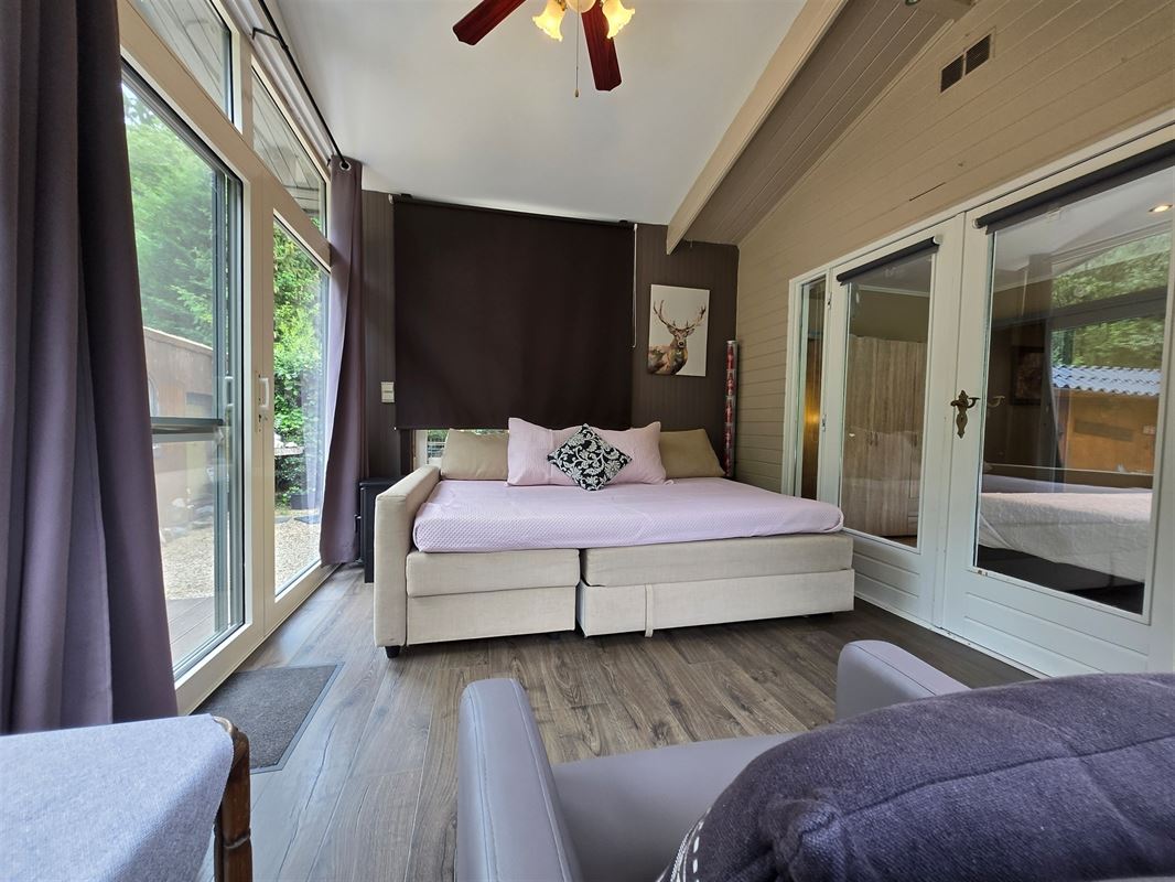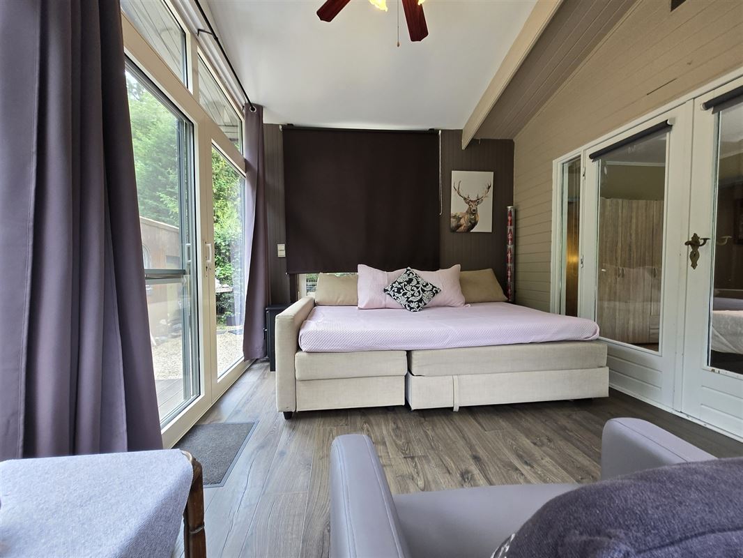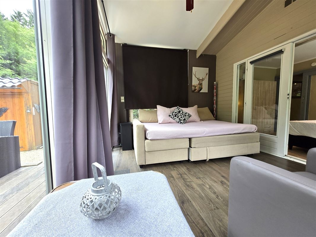 Smaakvol ingerichte, perfect onderhouden ruime prefab chalet, met 2 aangebouwde veranda’s,