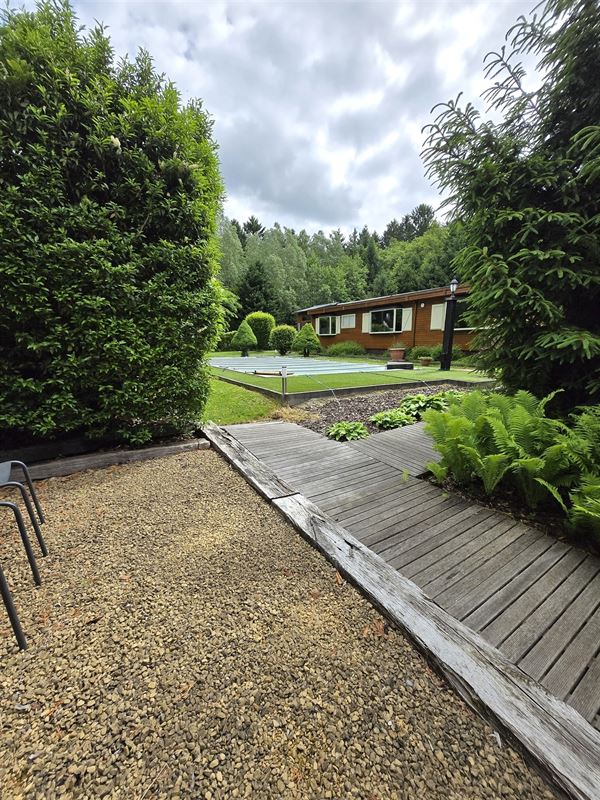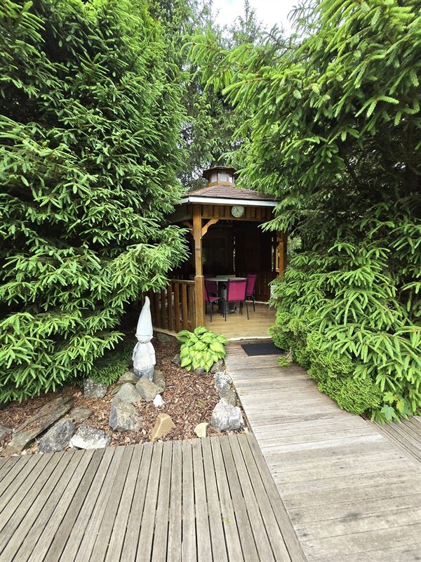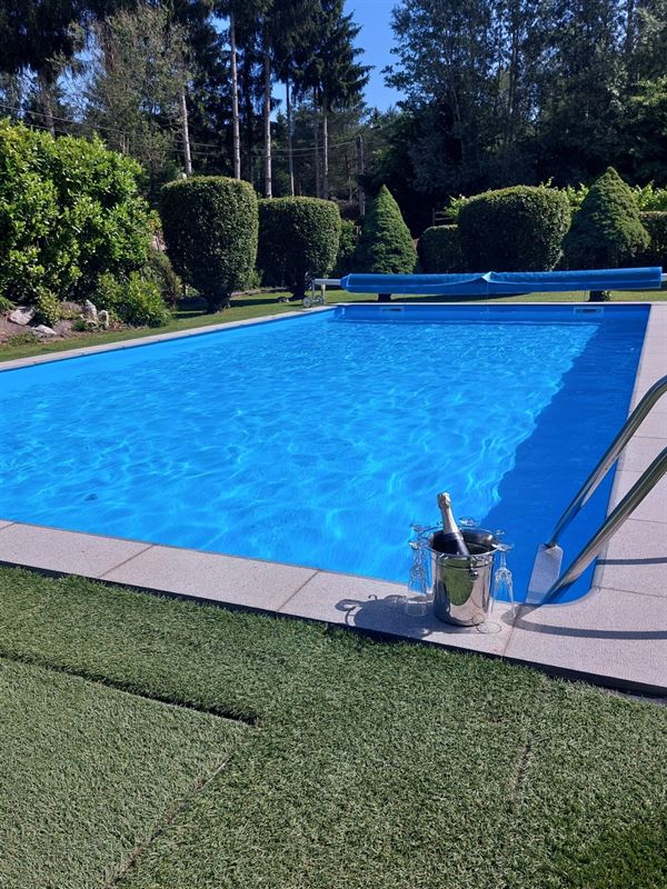 Extra’s: zwembad, garage / atelier, goed onderhouden, vele gezellige terrasjes en kiosk, Proximus en satelliet aansluiting. Centrale verwarming op gas en pellet kachel in living. Gezellige aangebouwde veranda’s met zetelbed.