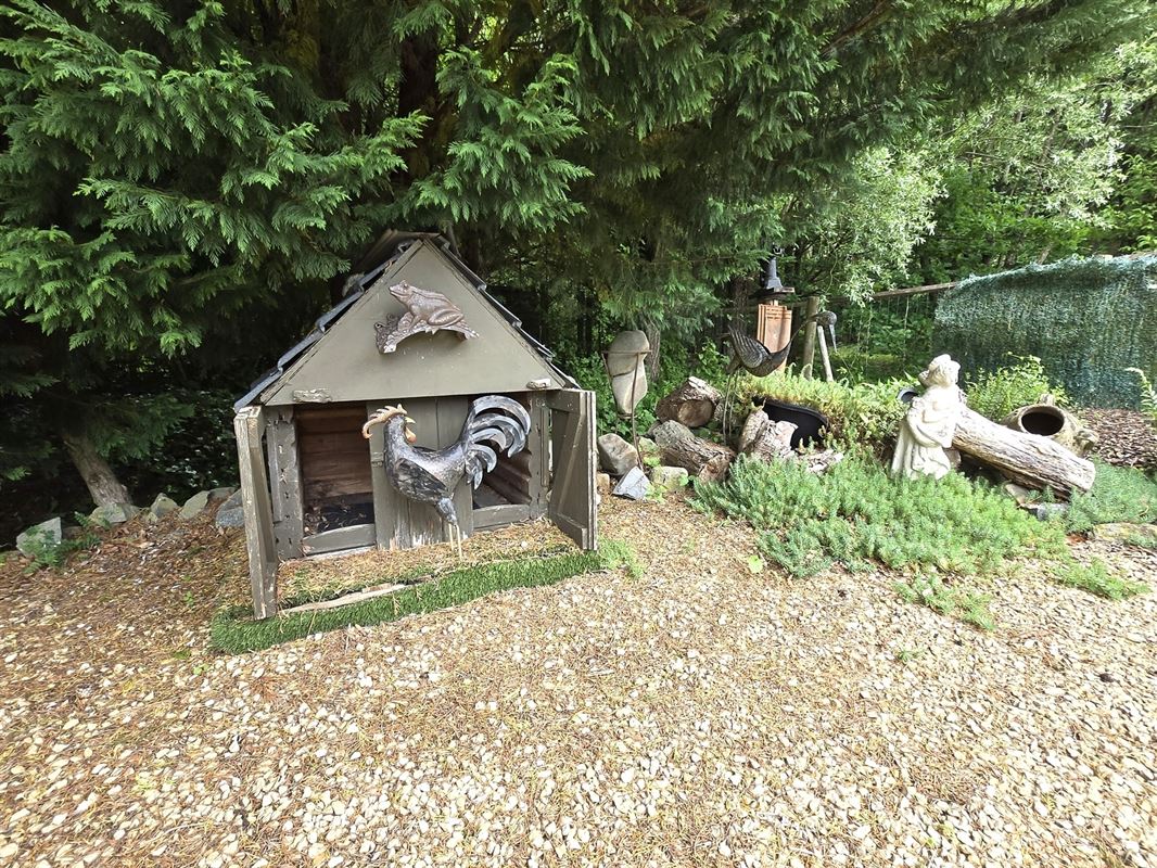 Tuin: Garage – atelier ruime multifunctionele ruimte, alle faciliteiten voor vast verblijf, biljart, onderhoudsvriendelijke tuin, kiosk, kippenhok, omheind met hek, oprit met autostaanplaatsen.