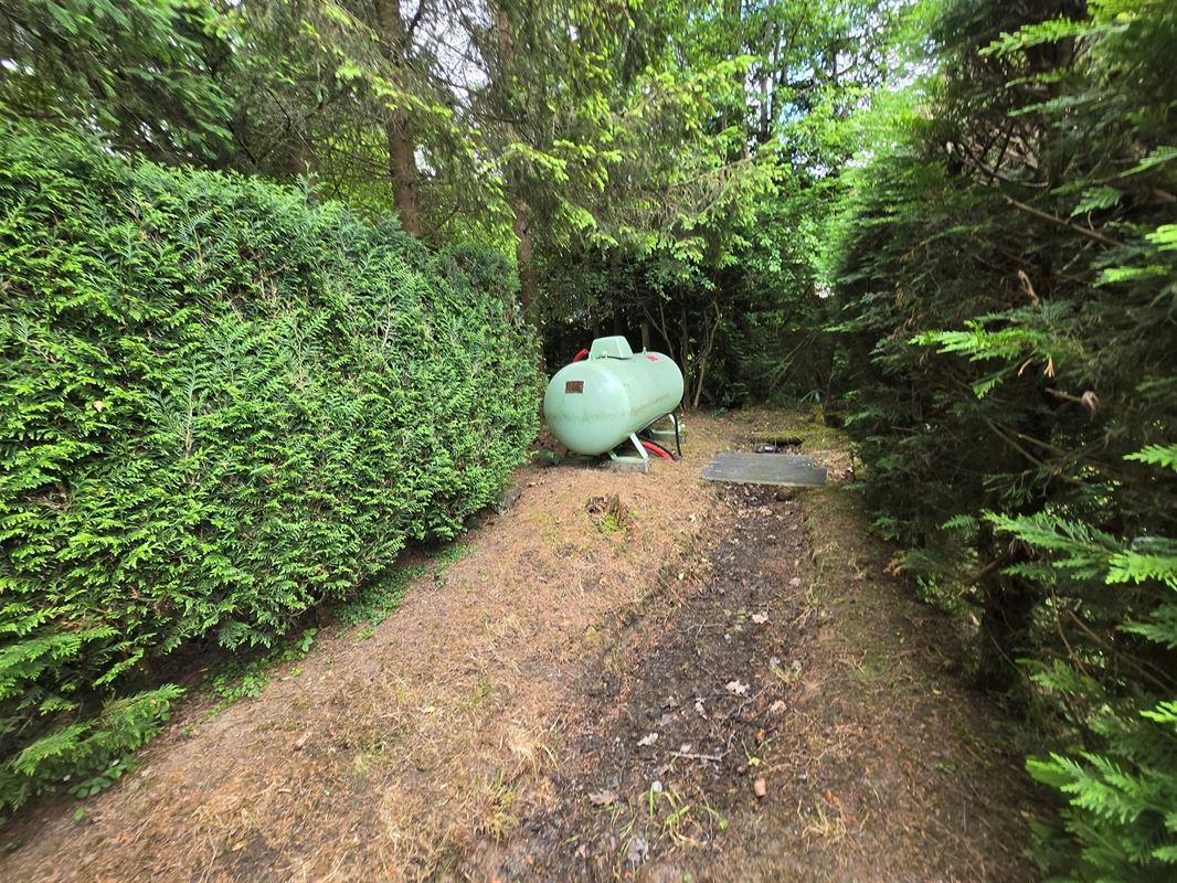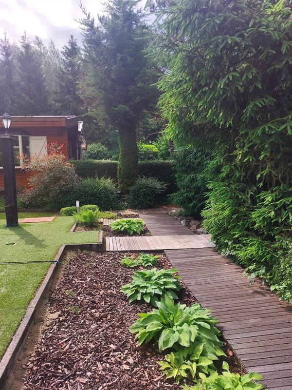 feeërieke grote tuin 24a 85 ca met zwembad en vele terrassen, volledig omheind.