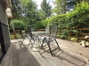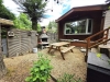 Onderhoudsvriendelijke vlakke fraai beplante, omheinde privétuin met onverwarmd zwembad.
