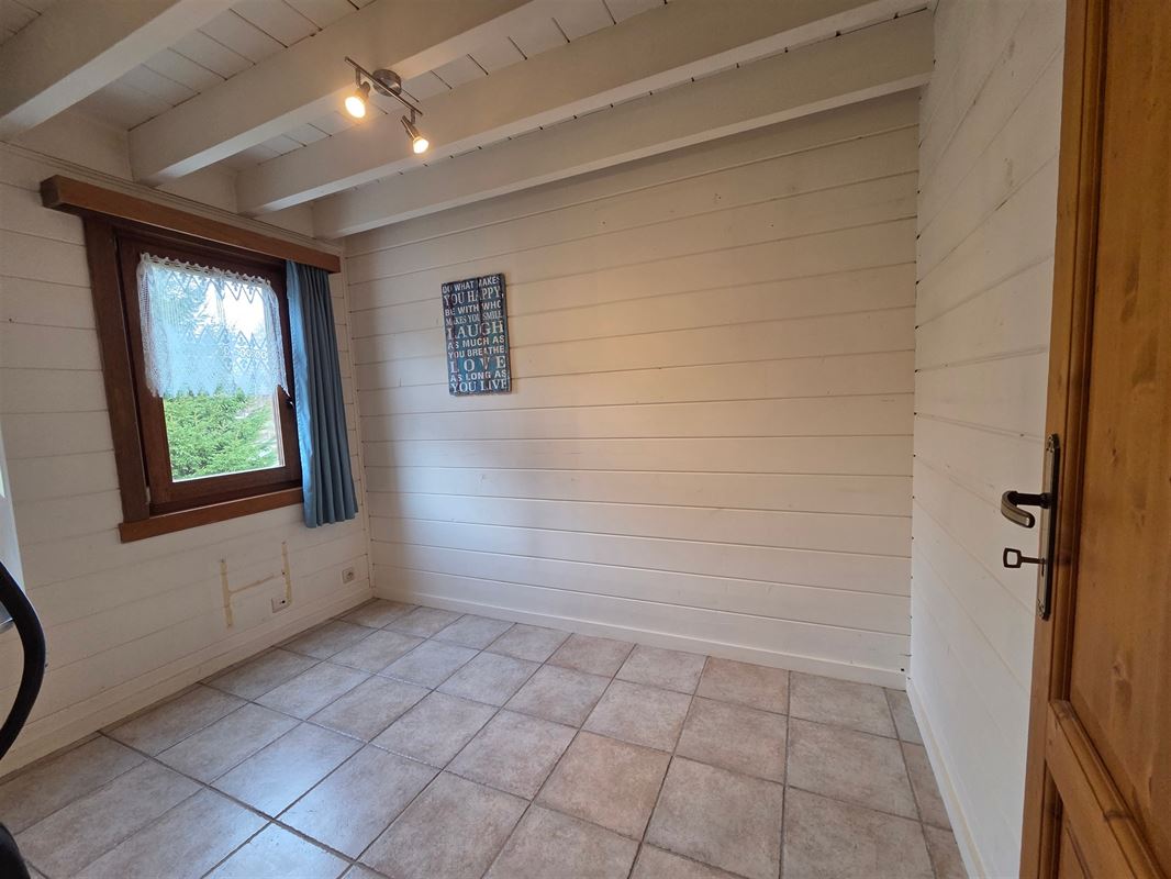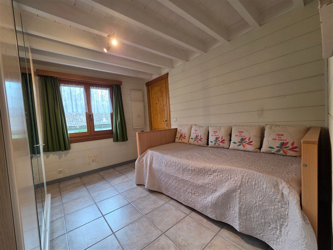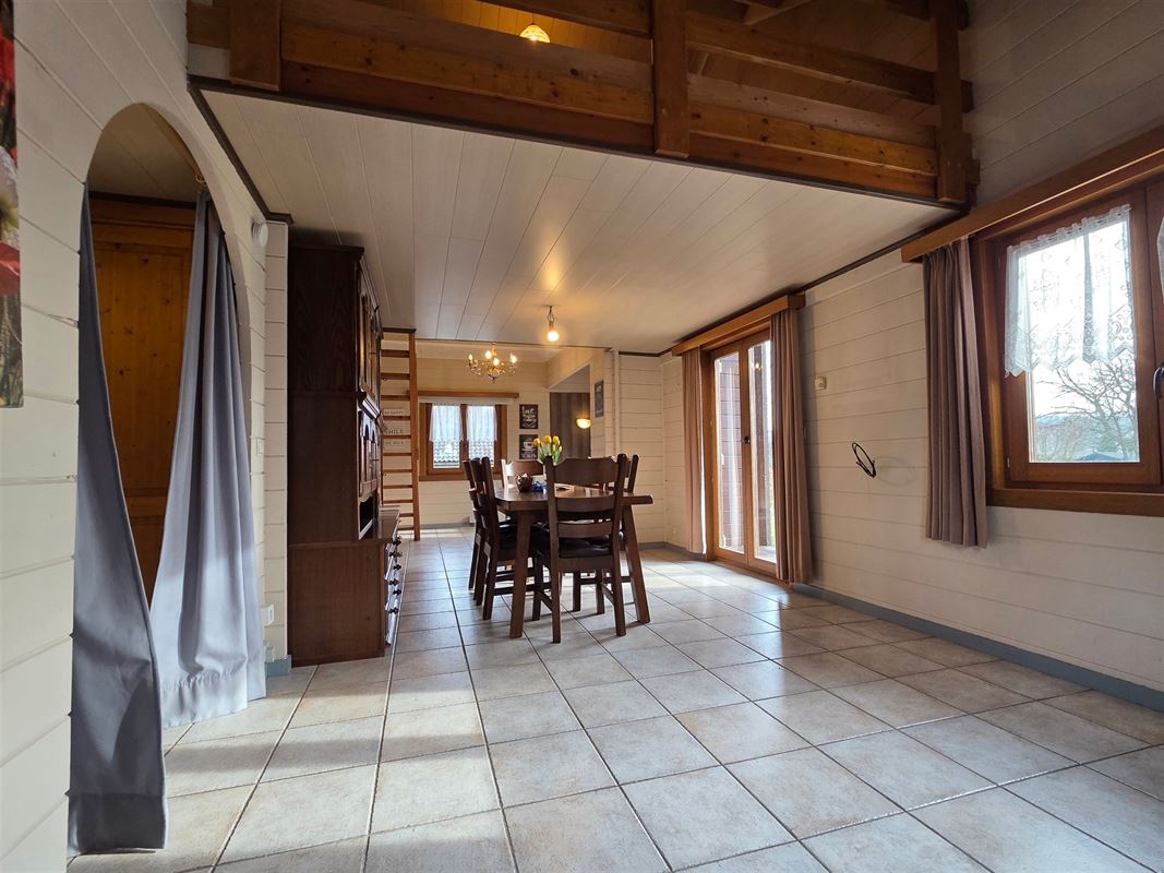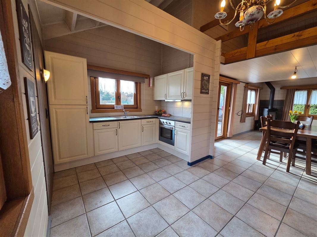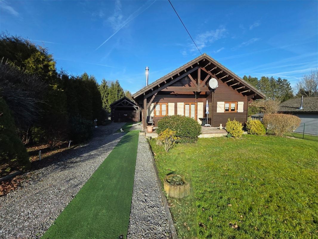 IMMOHALI verkoopt charmante en kwalitatieve chalet (type stapelbouw) gelegen in een rustige doodlopende straat in recreatiezone, ideaal als tweede verblijf,