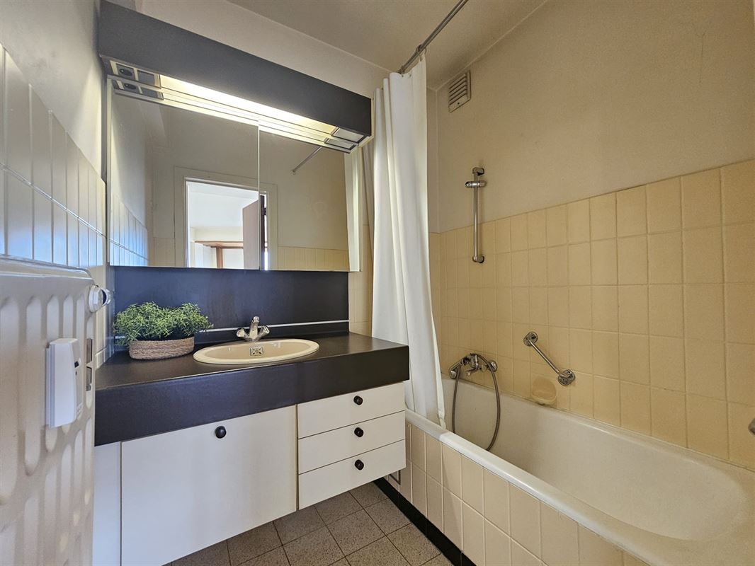 Bij het binnentreden komt u in een ruime inkomhal die toegang biedt tot de verschillende woonruimtes. De lichtrijke woonkamer sluit aan op een praktische keuken. De badkamer is uitgerust met een ligbad en lavabo. Verder beschikt het appartement over een afzonderlijk gastentoilet, een handige berging en een ruime slaapkamer met kleerkasten. Als extra troef is er een privatieve kelderruimte inbegrepen.
