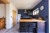 Indeling gelijkvloers: inkomhal, gastentoilet, woonkamer met open keuken en een praktische bijkeuken.